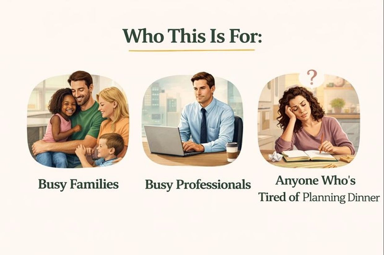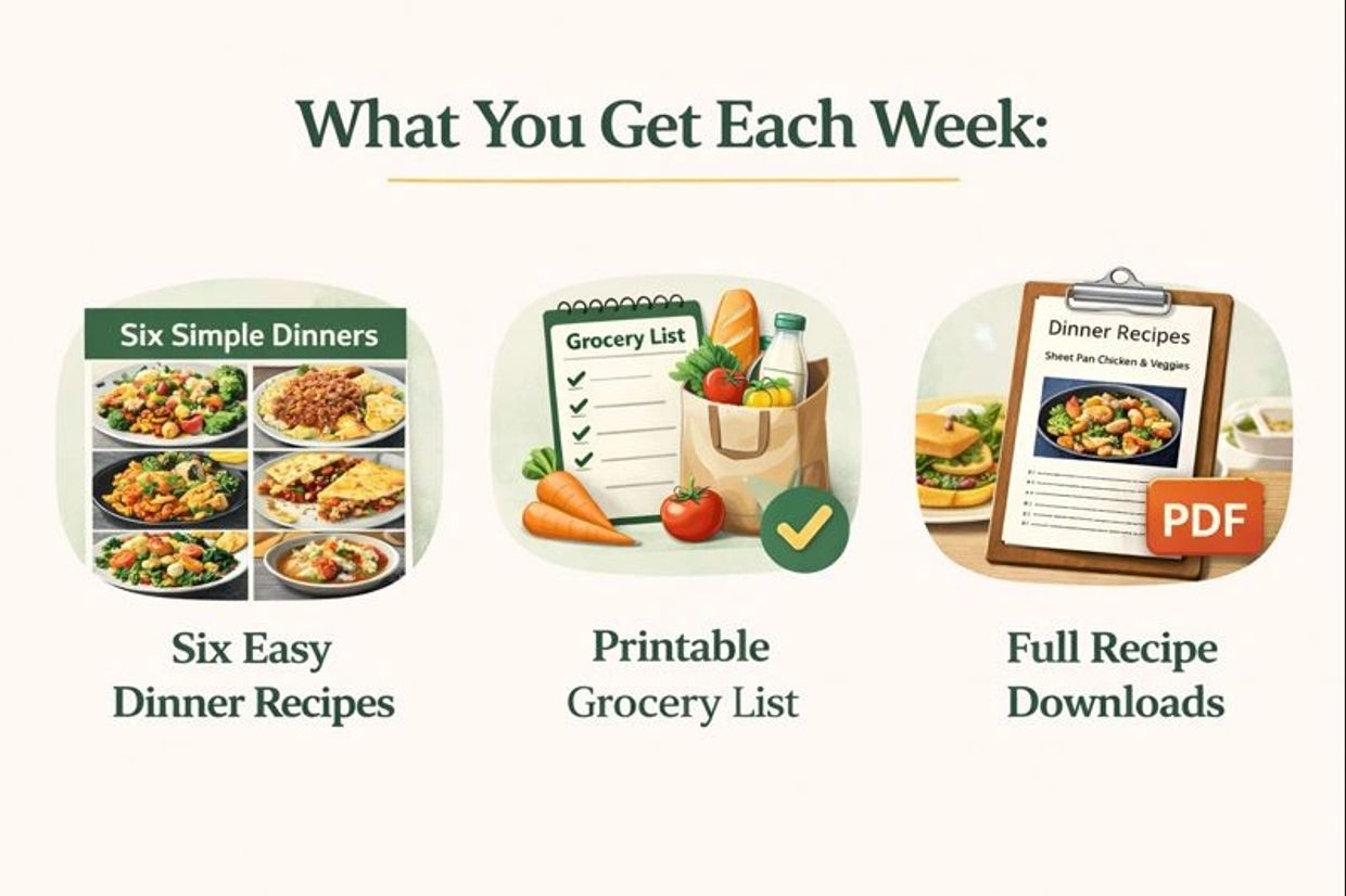 Real, weeknight-friendly dinner plans designed to save you time, money, and decision fatigue — without complicated recipes or expensive ingredients.